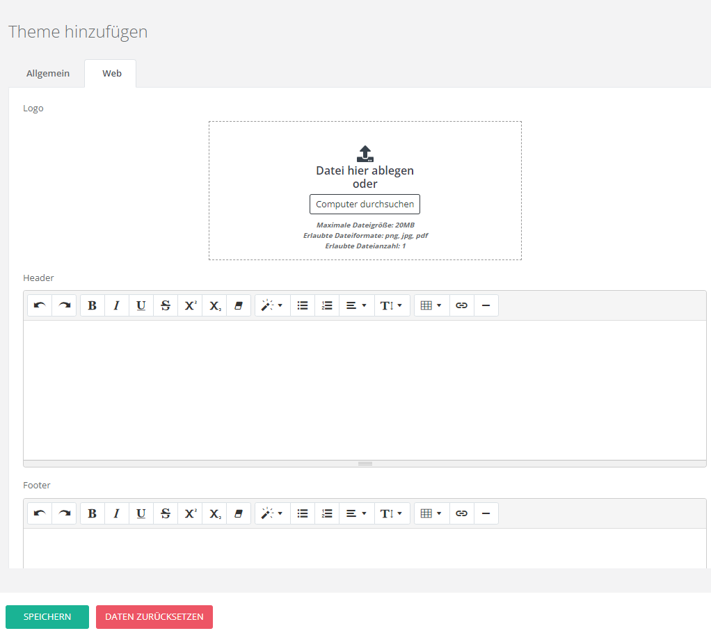 Ein Theme kann das Logo des Unternehmens beinhalten, welches beim Fragebogen angezeigt werden soll.