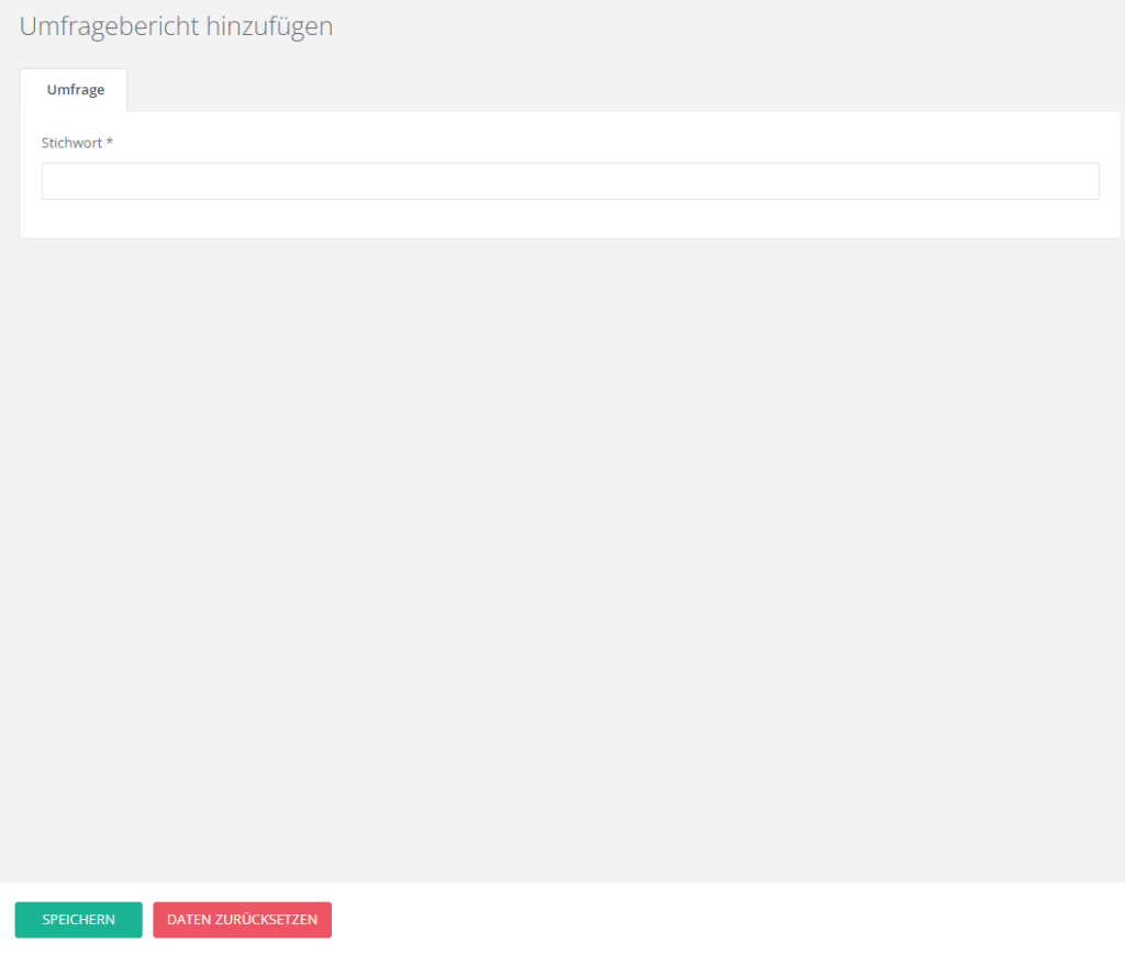 Möchten Sie einen Umfragebericht hinzufügen, klicken Sie auf den grünen Button +Umfragebericht hinzufügen und geben dem Bericht ein Stichwort.