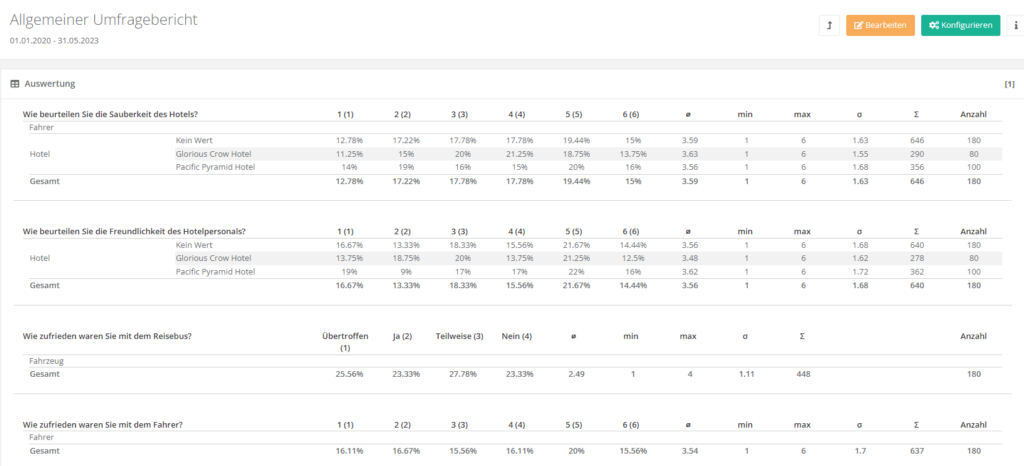 Nachdem Sie die Konfiguration abgeschlossen haben, wird nach der Berechnung, die Auswertung der Antwortbögen angezeigt.