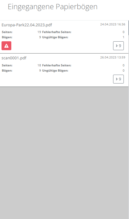Der „Löschen“-Button entfernt den gescannten Bogen.